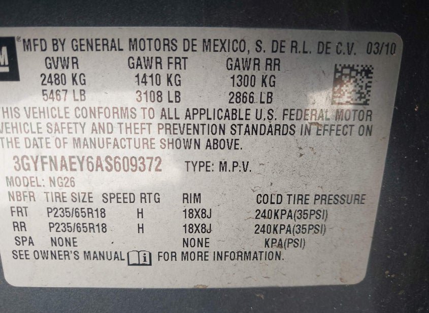 - VIN: 3GYFNAEY6AS609372