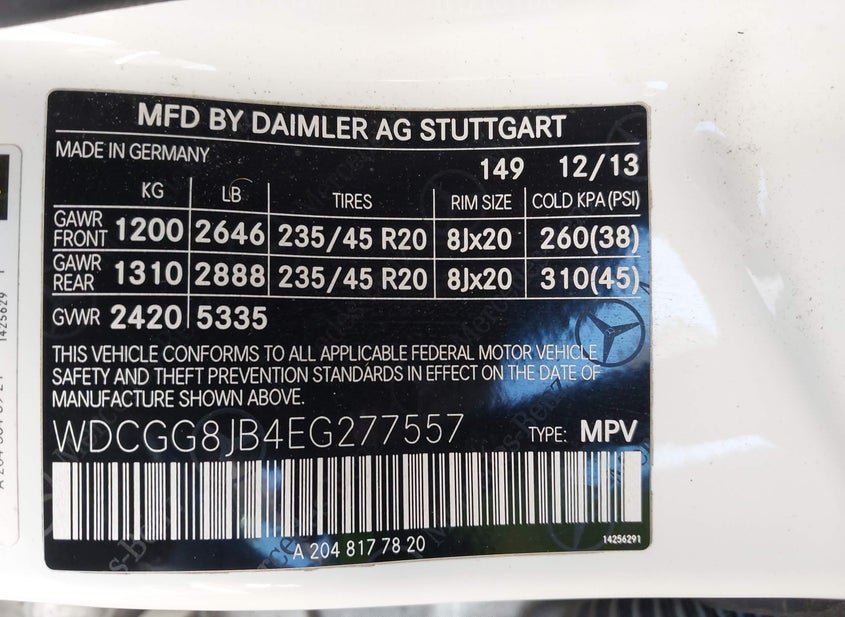 - VIN: WDCGG8JB4EG277557