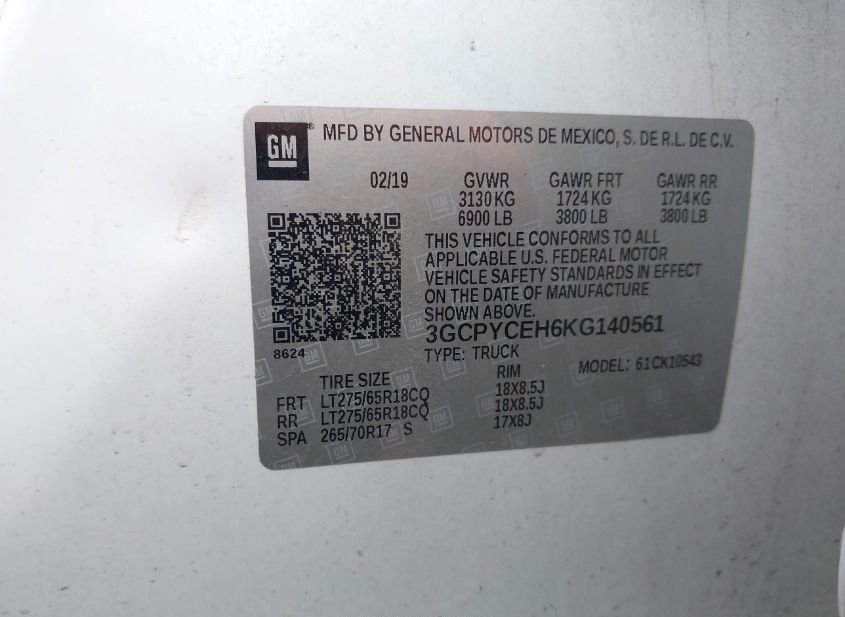 - VIN: 3GCPYCEH6KG140561
