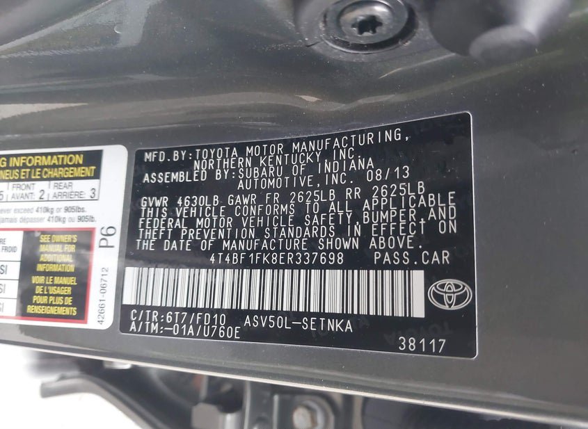 - VIN: 4T4BF1FK8ER337698