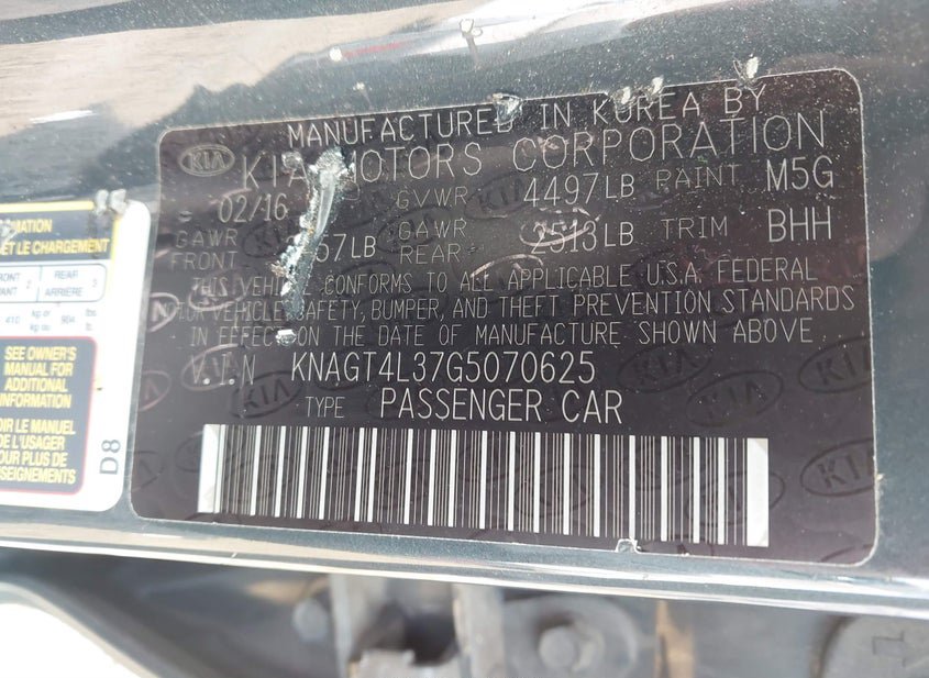 - VIN: KNAGT4L37G5070625