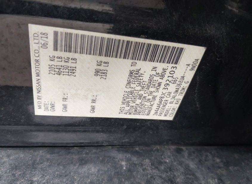 - VIN: 1N4AA6AP8JC392103