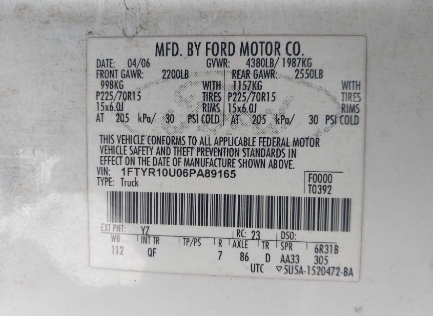 - VIN: 1FTYR10U06PA89165