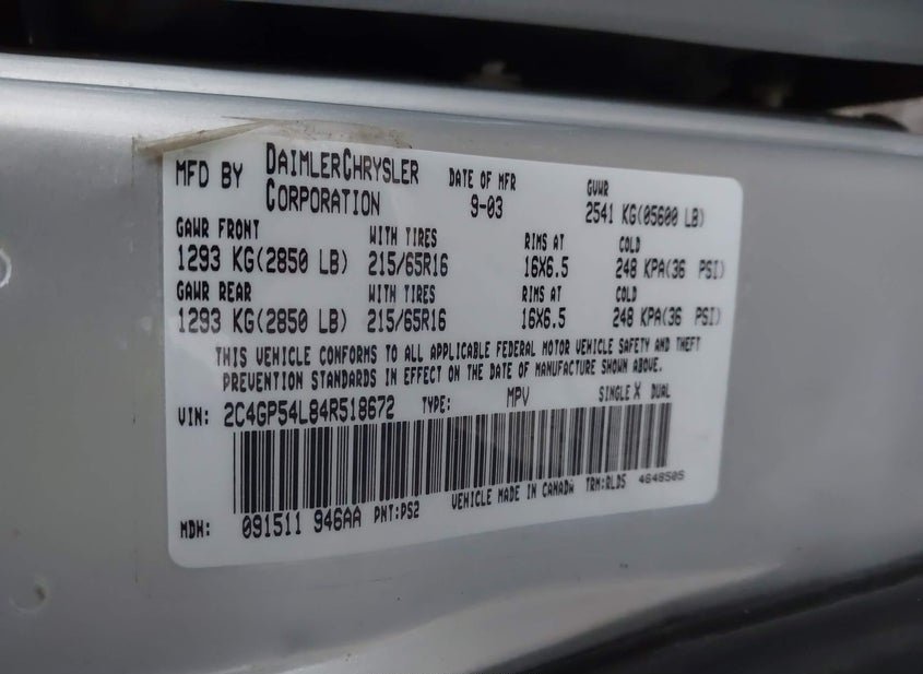 - VIN: 2C4GP54L84R518672