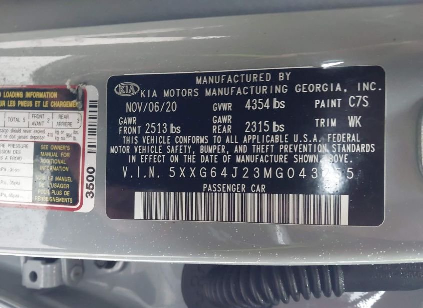 - VIN: 5XXG64J23MG043255