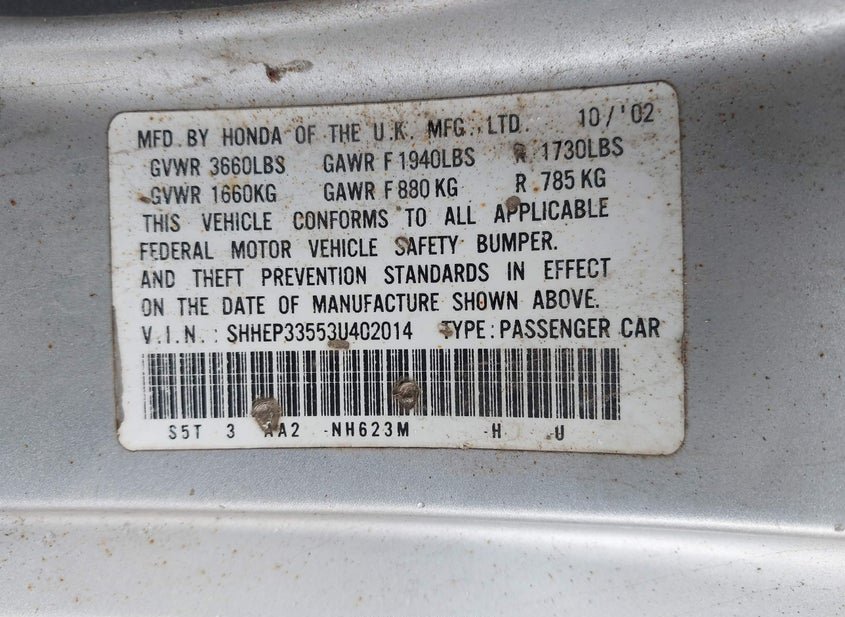 - VIN: SHHEP33553U402014