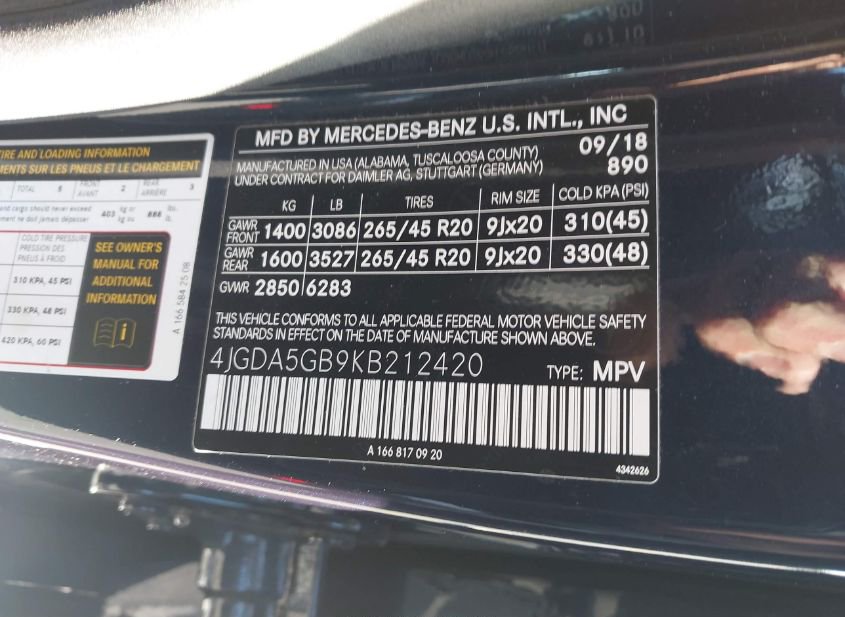 - VIN: 4JGDA5GB9KB212420