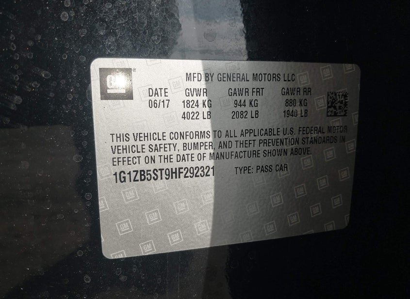 - VIN: 1G1ZB5ST9HF292321