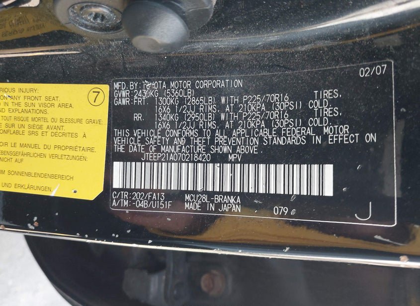 - VIN: JTEEP21A070218420
