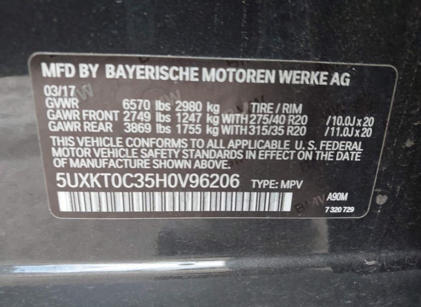 - VIN: 5UXKT0C35H0V96206