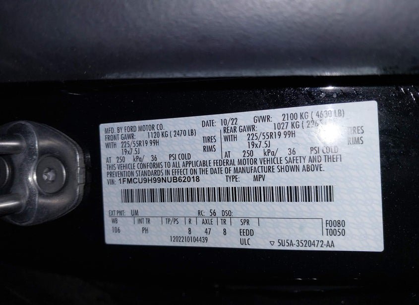 - VIN: 1FMCU9H99NUB62018