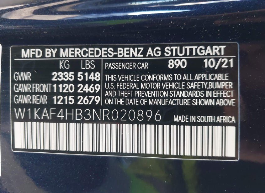 - VIN: W1KAF4HB3NR020896