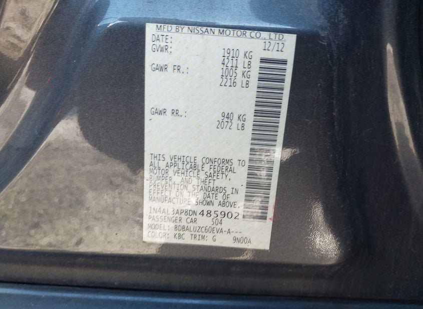 - VIN: 1N4AL3AP8DN485902
