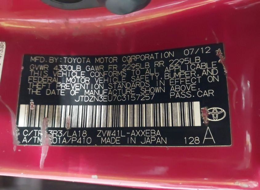 - VIN: JTDZN3EU7C3157257