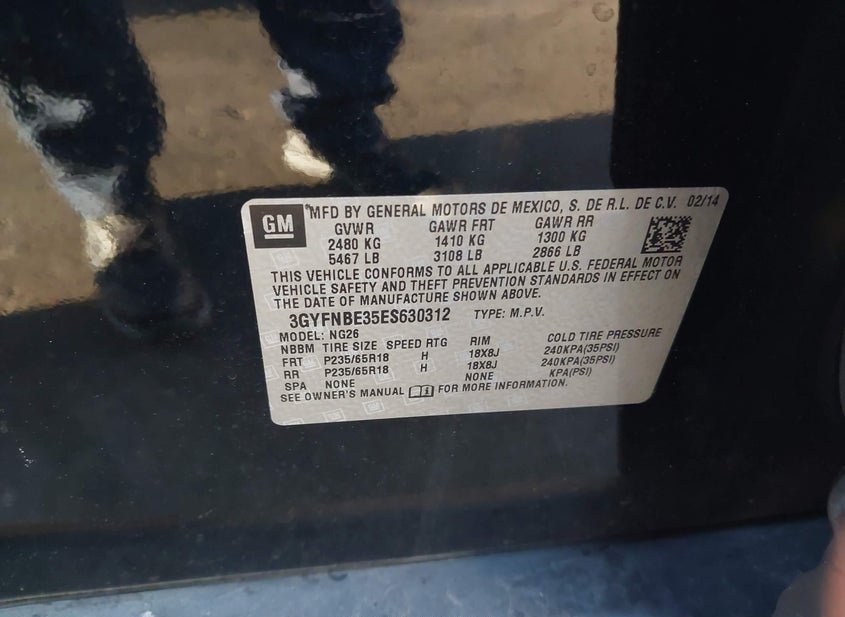 - VIN: 3GYFNBE35ES630312