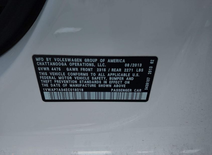 - VIN: 1VWAP7A34EC019218
