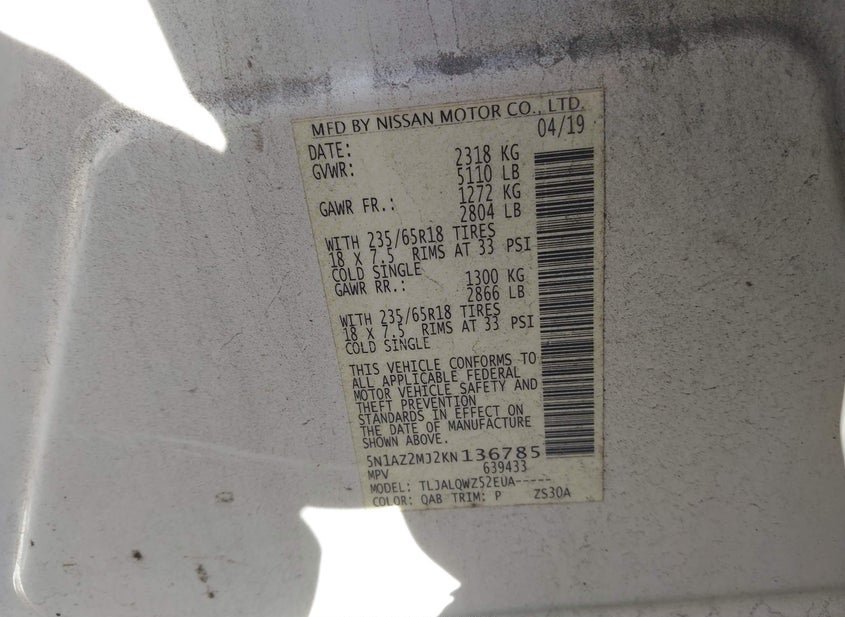 - VIN: 5N1AZ2MJ2KN136785