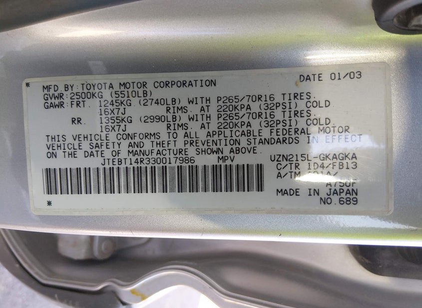 - VIN: JTEBT14R330017986