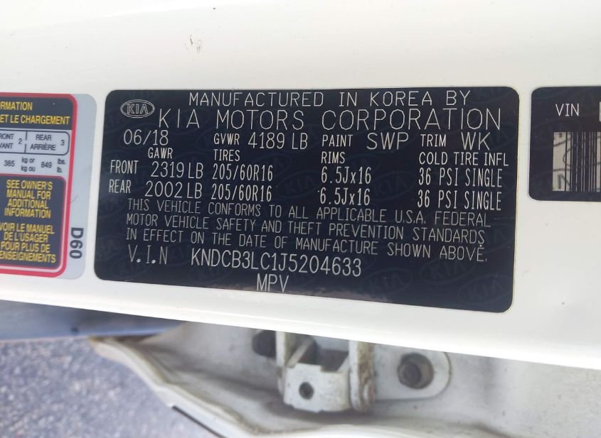 - VIN: KNDCB3LC1J5204633