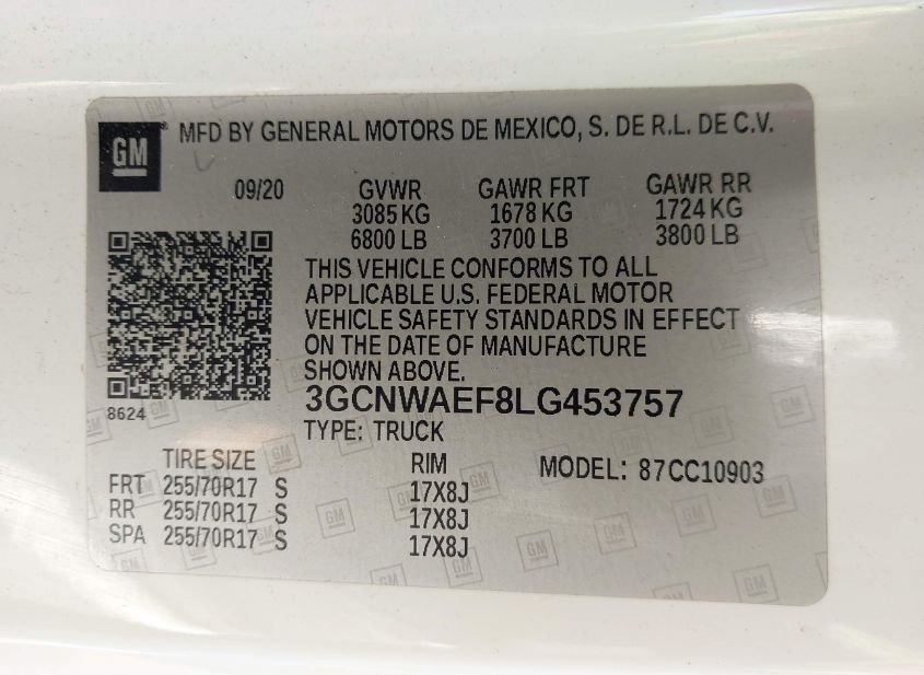 - VIN: 3GCNWAEF8LG453757
