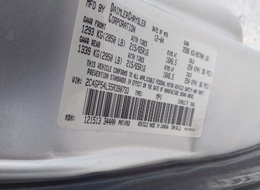 - VIN: 2C4GP54L55R390733