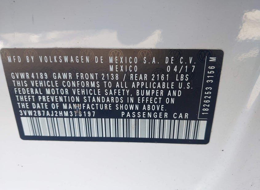 - VIN: 3VW2B7AJ2HM378197