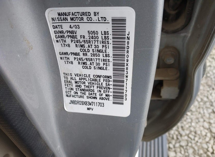- Название лота: 2003 Nissan Pathfinder 3.5L