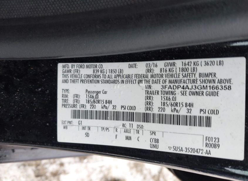 - VIN: 3FADP4AJ3GM166358