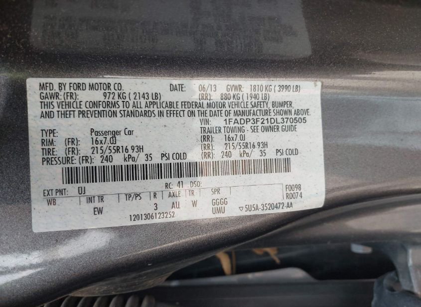 - VIN: 1FADP3F21DL370505