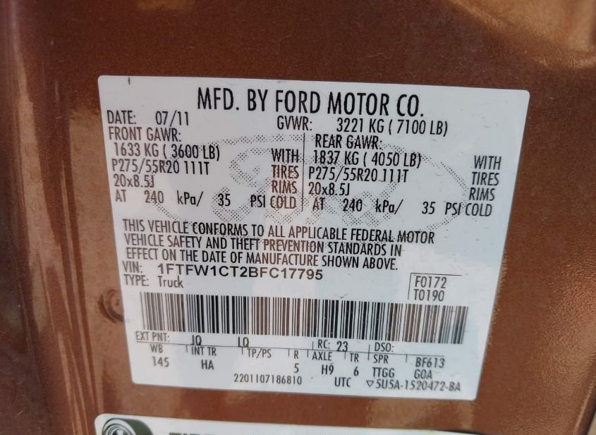 - VIN: 1FTFW1CT2BFC17795