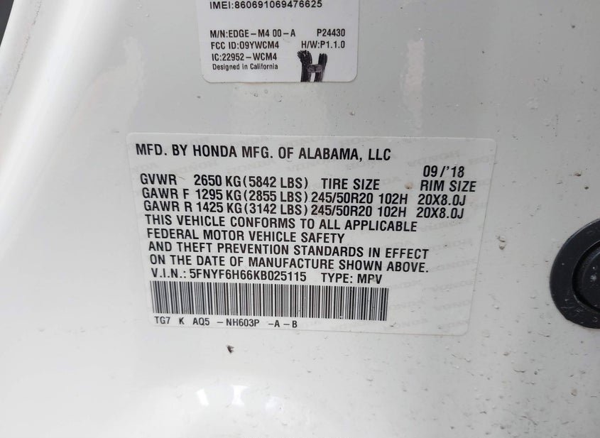 - VIN: 5FNYF6H66KB025115