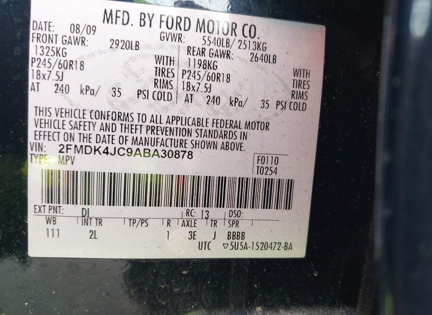 - VIN: 2FMDK4JC9ABA30878