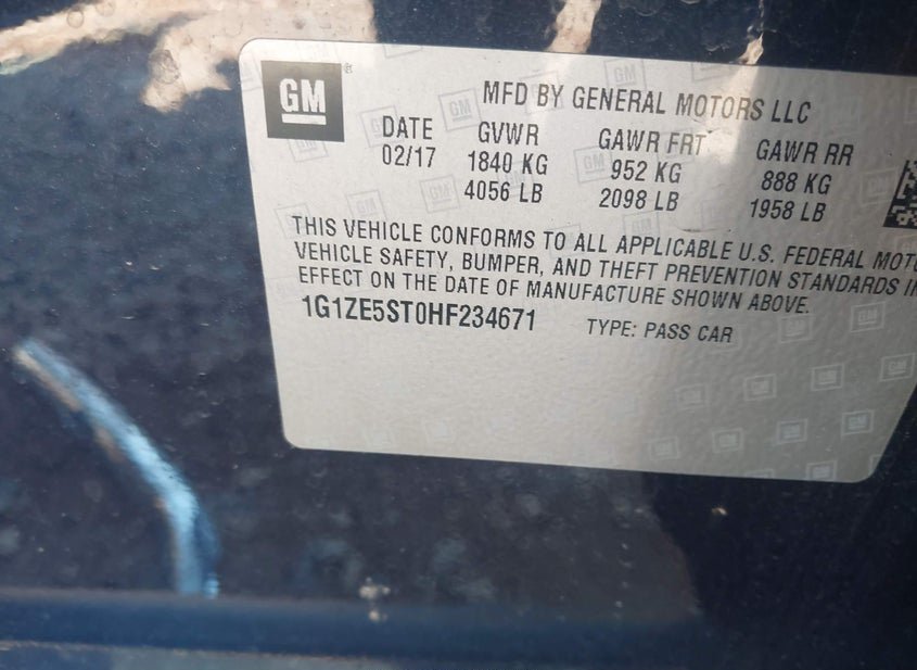 - VIN: 1G1ZE5ST0HF234671