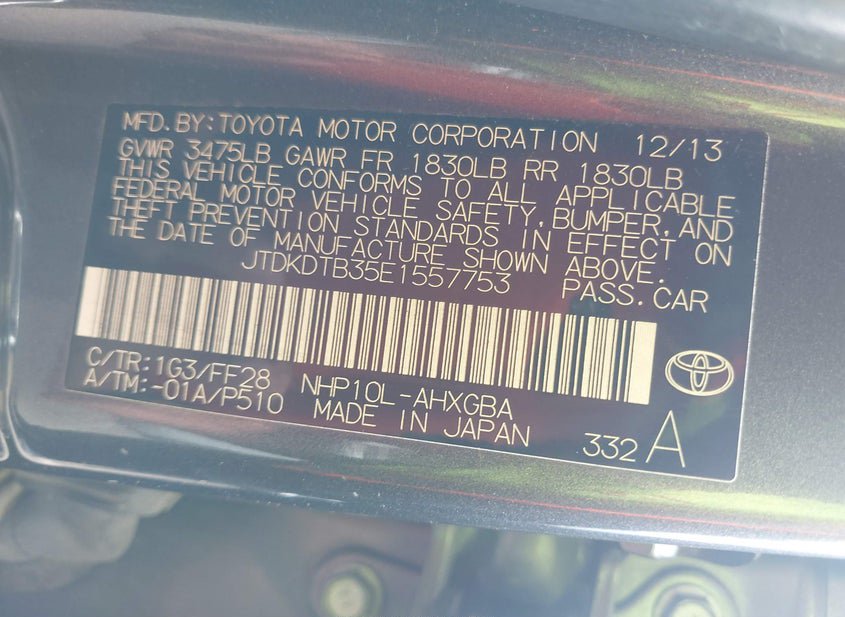 - VIN: JTDKDTB35E1557753