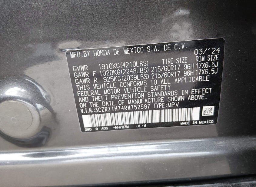 - Название лота: 2024 HONDA HR-V 2WD EX-L/2WD EX-L W/O BSI