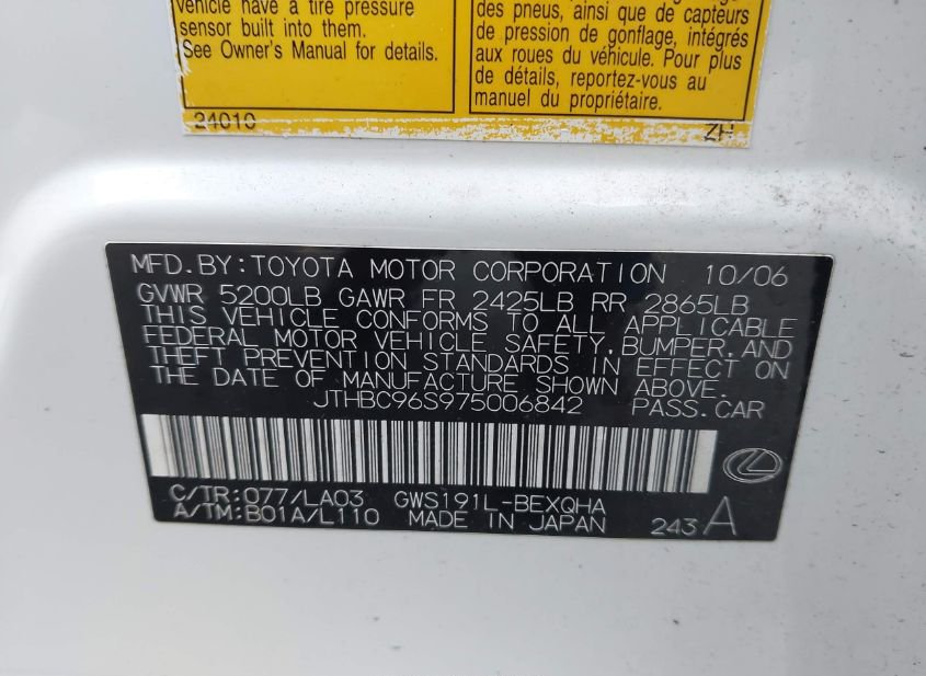 - Название лота: 2007 LEXUS GS 450H
