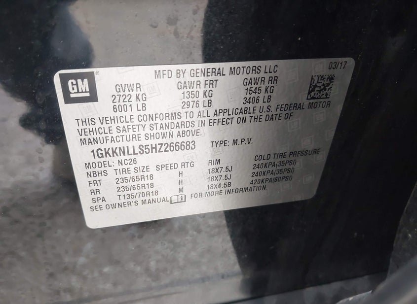 - VIN: 1GKKNLLS5HZ266683