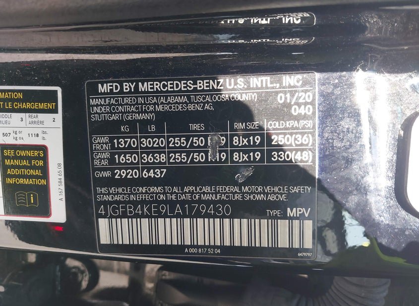 - VIN: 4JGFB4KE9LA179430