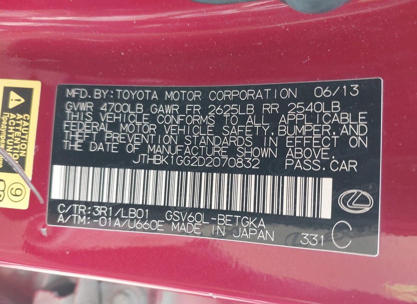 - VIN: JTHBK1GG2D2070832