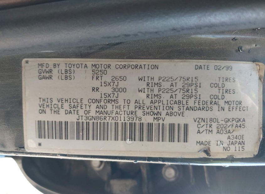 - VIN: JT3GN86R7X0113978