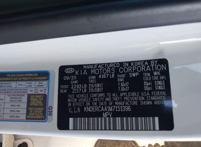 - VIN: KNDERCAA1M7151396