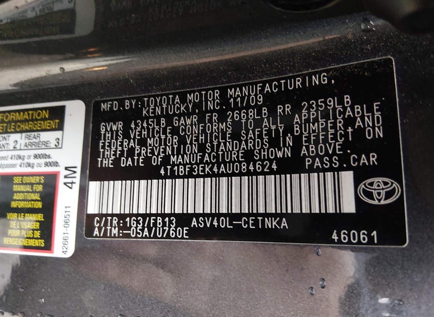 - VIN: 4T1BF3EK4AU084624