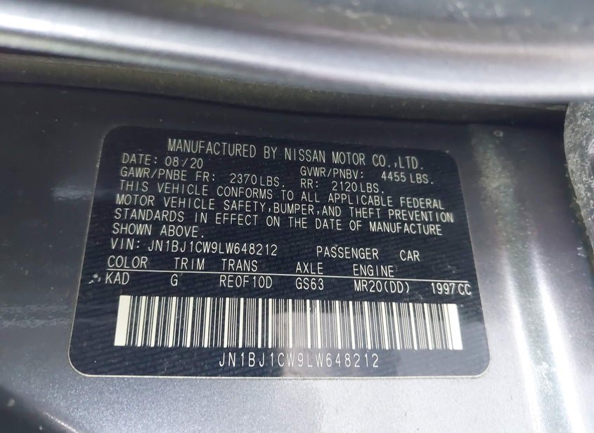 - VIN: JN1BJ1CW9LW648212