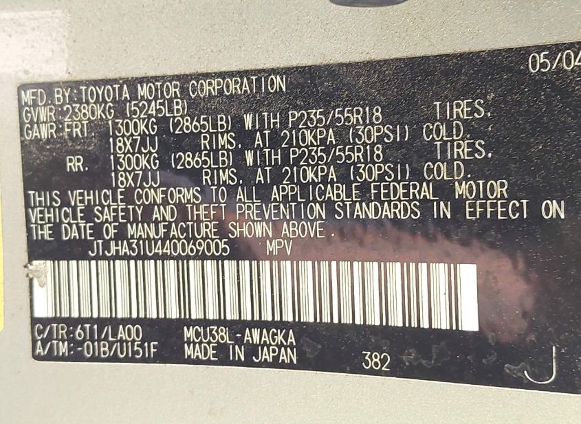 - VIN: JTJHA31U440069005