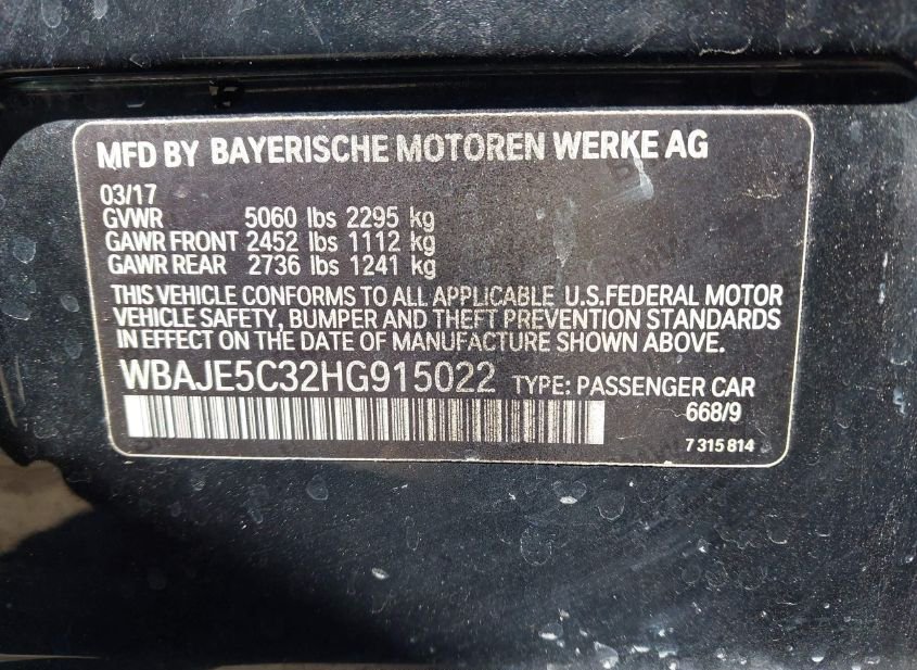 - VIN: WBAJE5C32HG915022
