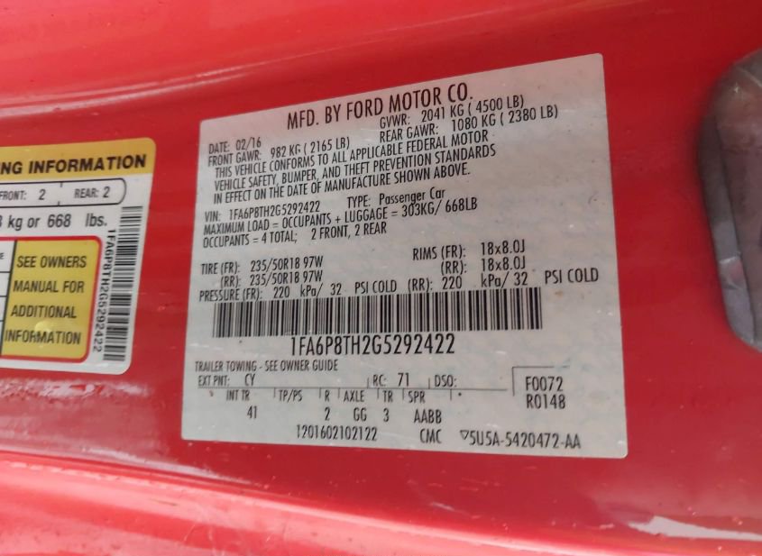 - VIN: 1FA6P8TH2G5292422