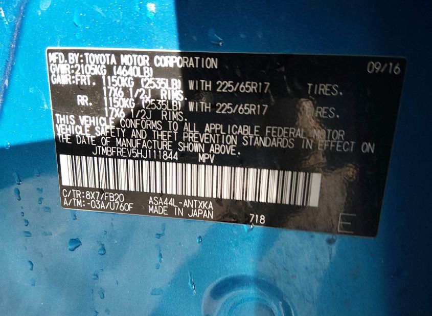 - VIN: JTMBFREV5HJ111844