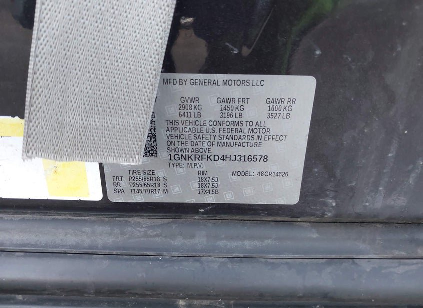 - VIN: 1GNKRFKD4HJ316578