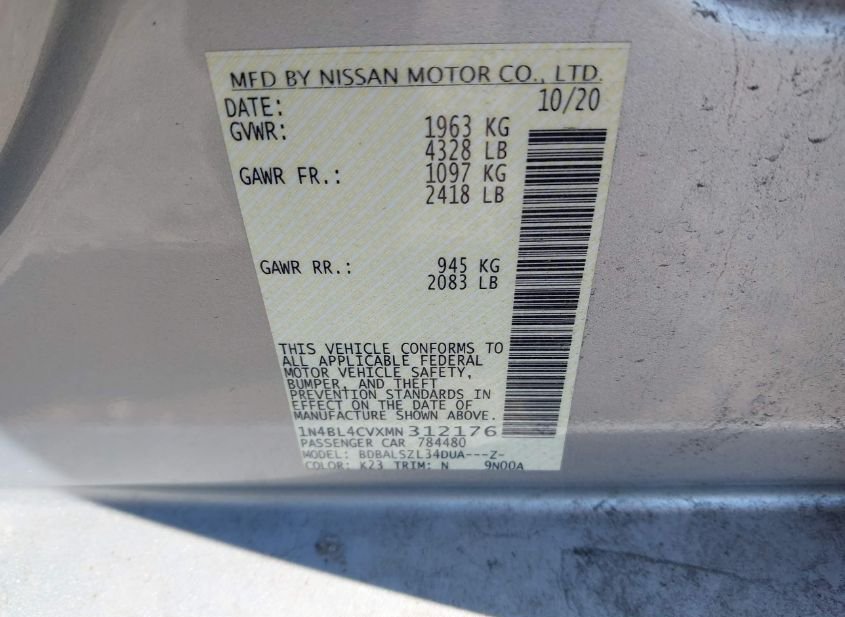 - VIN: 1N4BL4CVXMN312176