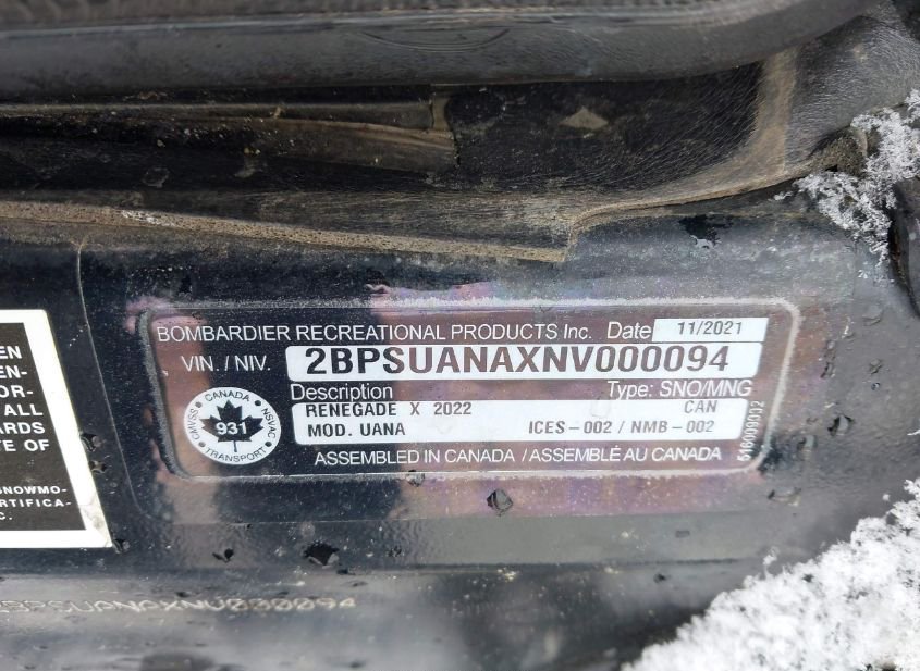 - Название лота: 2022 SKI-DOO RENEGADE 600